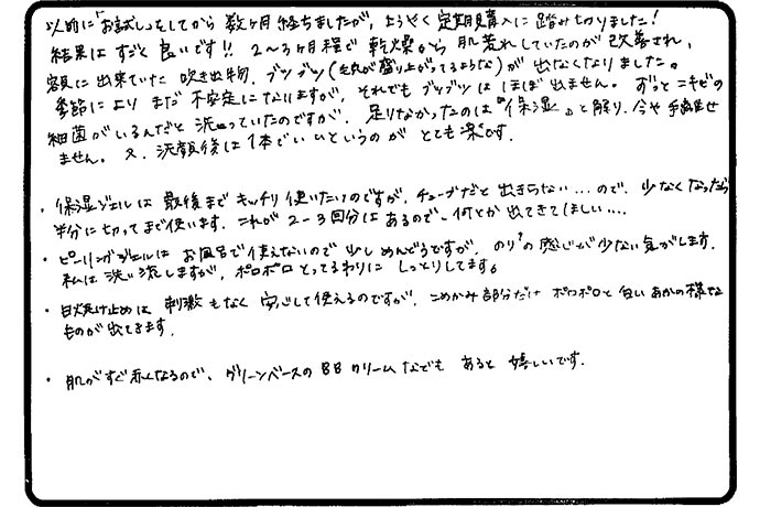 季節によりまだ不安定になりますが、それでもブツブツはほぼ出ません。